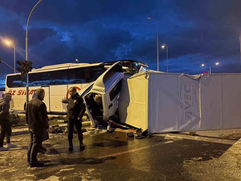 Edinilen bilgiye göre, Anbar Mahallesi Osman Kavuncu Bulvarı’nda bulunan kavşakta, K.D. yönetimindeki 58 ABG 368 plakalı yolcu otobüsü ile O.K. yönetimindeki 38 BA 103 plakalı kamyonet çarpıştı. Çarpışmanın etkisiyle kamyonet yan yatarken, ihbar üzerine bölgeye polis, sağlık, itfaiye ve AFAD ekipleri sevk edildi. Polis ekipleri çevrede güvenlik önlemi alırken, AFAD ve itfaiye ekipleri de otobüsteki yolcuların tahliyesini sağladı. Kazada yaralanan otobüs şoförü K.D., otobüste görevli muavin ve 2 yolcu ile kamyonet şoförü O.K. olay yerindeki ilk müdahalenin ardından ambulansla hastaneye kaldırıldı. Yaralıların durumunun iyi olduğu öğrenilirken, otobüsteki yolcular firmaya ait başka bir otobüse aktarılarak, yollarına devam etti. Ekiplerin çalışmaları sürüyor. Kazayla ilgili inceleme başlatıldı.