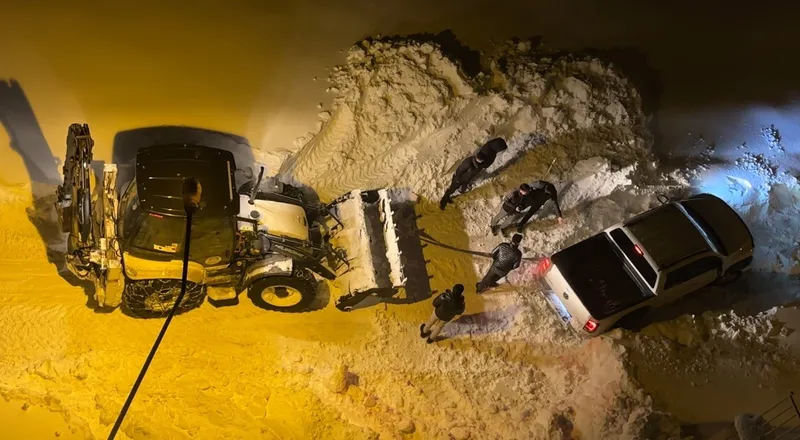 İlçede bir aydır etkisini sürdüren yoğun kar yağışı, günlük yaşamı olumsuz etkilemeye devam ediyor. Kar kalınlığının yüksek kesimlerde 2 metreye, ilçe merkezinde ise 1 metreye ulaştığı bölgede ulaşımda aksamalar yaşanıyor. Esentepe Mahallesi’nde seyreden bir kamyonet, yoğun kar ve tipi nedeniyle kara saplanarak mahsur kaldı. Çevredeki vatandaşların yaklaşık 2 saat süren kendi imkanlarıyla aracı kurtarma çabaları sonuçsuz kaldı. Durumun bildirilmesi üzerine bölgeye Yüksekova Belediyesi karla mücadele ekipleri sevk edildi. İş makinesi bölgede yol açma çalışması yapan ekipler, saplandığı yerden çıkardıkları aracı güvenli alana ulaştırdı.